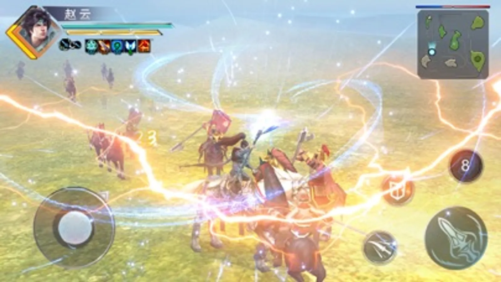 采用U3D打造的真实战场场景,你将化身骁勇武将,骑上剽悍骏马,在战场中自由穿梭,任意厮杀。