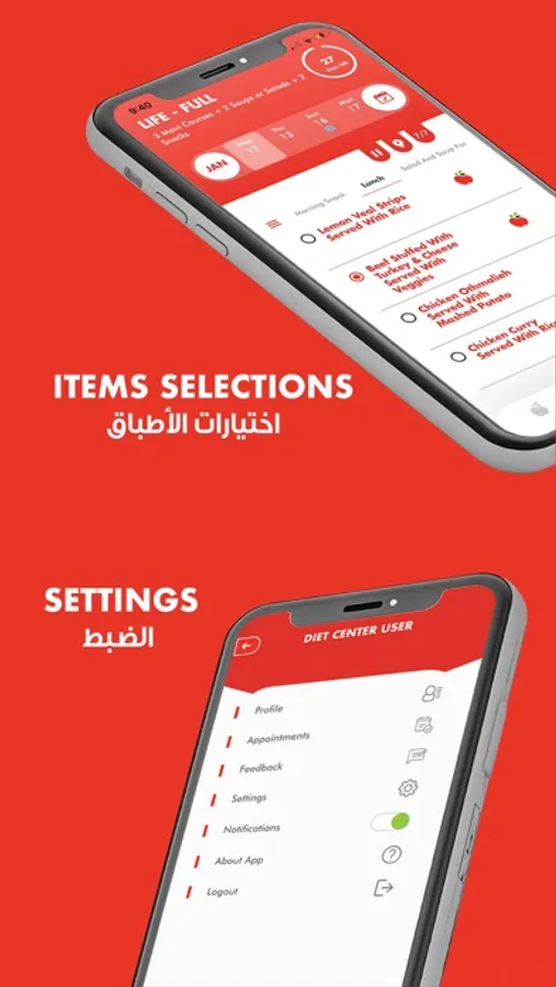 You can enjoy using the Diet Center’s Mobile Application in English or in Arabic.