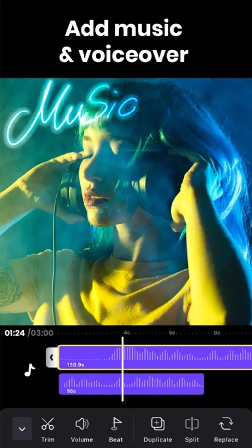 Vidma is a powerful video editor and slideshow maker that offers a wide selection of music and trending video effects to make your videos stand out on social media.