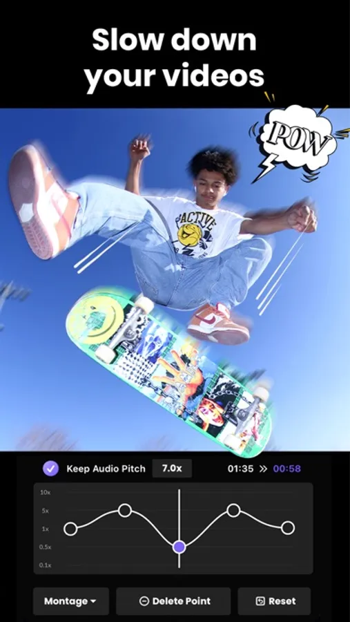 - Freeze Frame. Add a dramatic flair to your videos by halting the movement with one tap.
