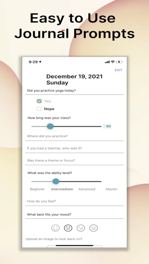 My Yoga Journal is the only journal + mindfulness mood tracking app focused solely around documenting your yoga journey.