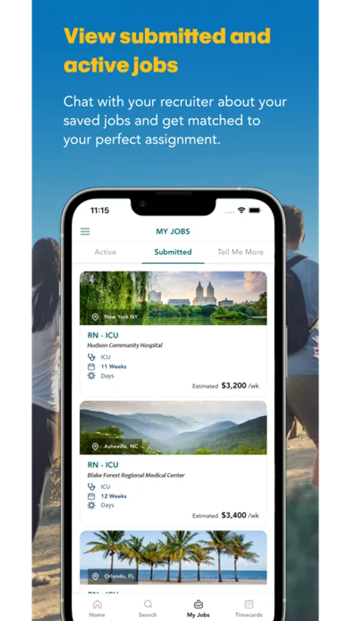 Instantly search jobs by pay estimate, location or shift. View all the information you need to find your perfect travel healthcare job and apply with just one tap.