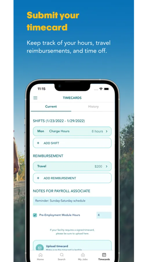 Once you’re on assignment, you can easily submit your timecard, request travel reimbursements and track your shifts all in one location.