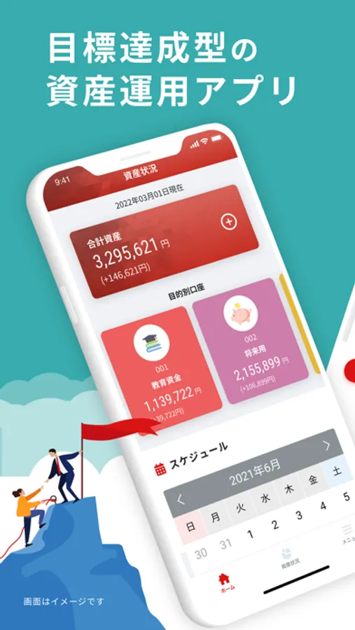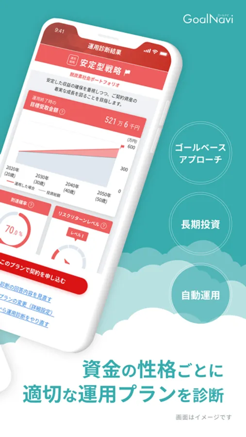 GoalNaviは、米国発のゴールベースアプローチで、目標(ゴール)までお客さまをナビゲートしてくれる目標達成型資産運用アプリです。