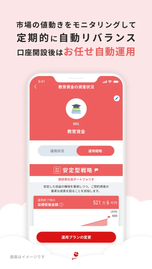 あとは自動運用でGoalNaviにお任せ。GoalNaviが市場の値動きをモニタリングして、定期的なリバランスや、資産配分基準の見直しを自動で行います。