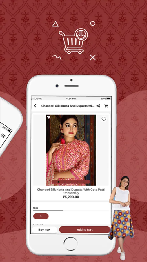 + Choose from a vast range of over 700 styles for kurtas, kurtis, tunics, sarees, fabric by the metre, mix and match, salwars, bed covers, towels, and more on Kilol's app.