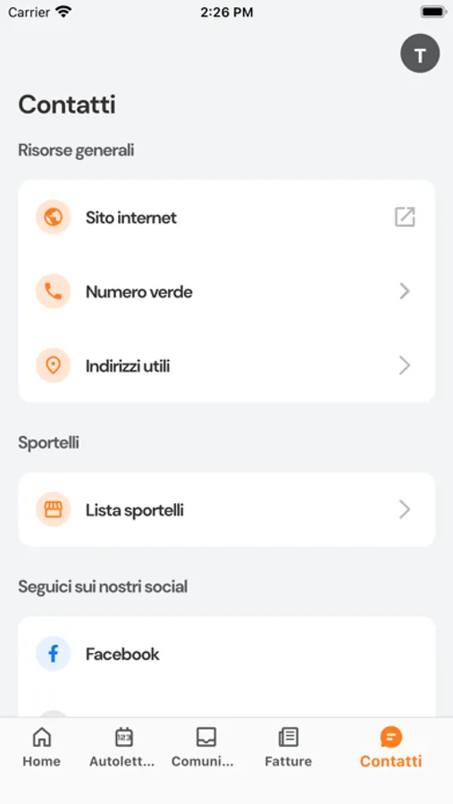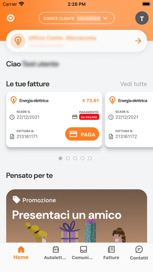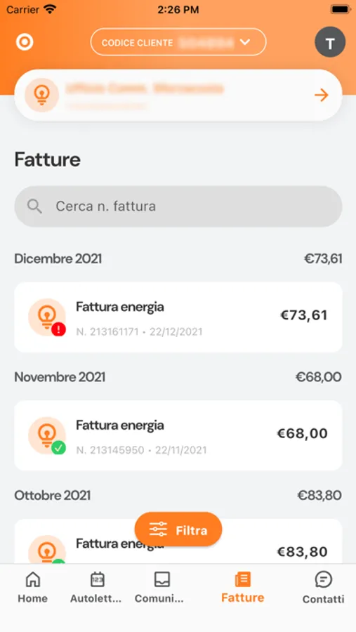 L'utilizzo dell'app non preclude l'invio delle fatture tramite email o posta cartacea come scelto al momento della firma del contratto o successiva modifica tramite contatto dei nostri uffici.