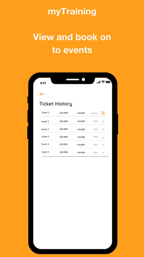 • Book on to events. You can see the events that you’re booked on to, and you can select and book on to events direct from the app