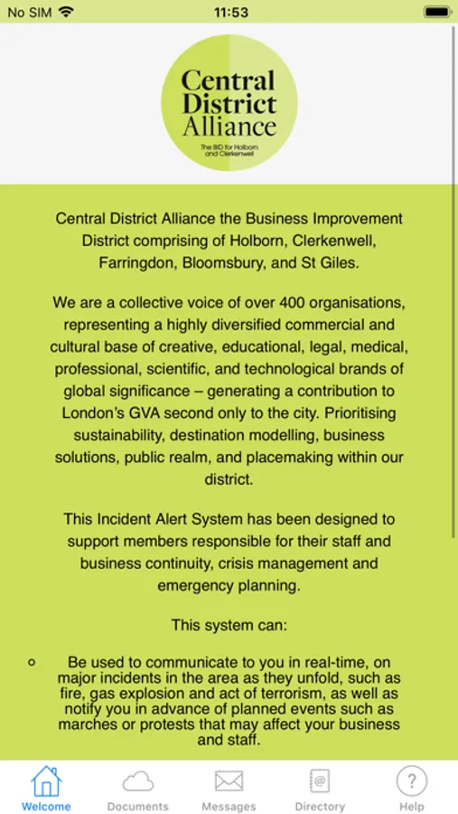 - Be used to communicate to you in real-time, on major incidents in the area as they unfold, such as fire, gas explosion and act of terrorism, as well as notify you in advance of planned events such as marches or protests that may affect your business and staff.