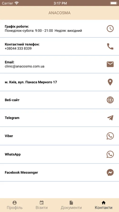 Convenient mobile app for patients of ANACOSMA clinic, with the help of which you can easily and quickly make an appointment for: