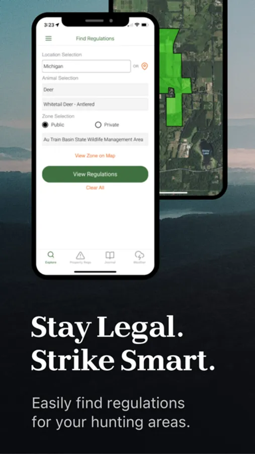 With Hunt Regs, there is no doubt you are legal. Hunt Regs is the first mobile app that allows hunters to quickly access regulations by dropping a pin or selecting a zone, eliminating the need to sort through complicated government websites and brochures. By offering season dates, bag limits, restrictions, required licenses, and all other relevant hunting regulations for your area, you can feel confident that wherever you choose to hunt, whether public or private, you will be within the law.