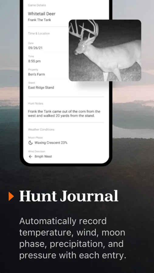 - Hunter-oriented weather including: temperature, moon phase, pressure, wind, precipitation and more