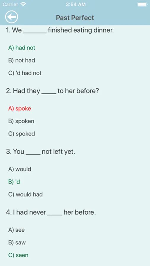 Find out and improve your information answering the questions and learn new knowledge about english grammar tenses by this app.