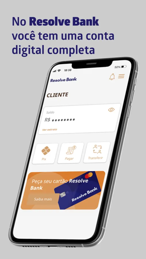 Resolve Bank, uma nova geração de contas digitais completas e seguras, para mais liberdade em suas movimentações financeiras.
