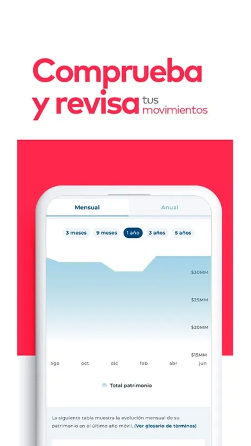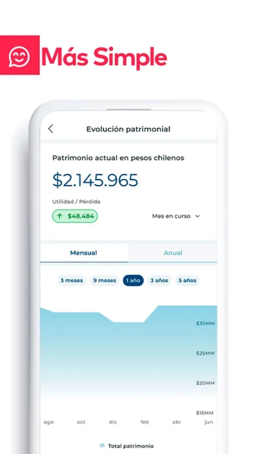 - Revisar y analizar la evolución de tu patrimonio en múltiples formatos: productos, cuentas, tipo de moneda y clases de activos.