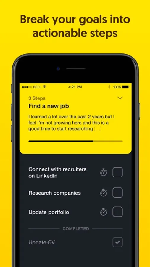 Make your goals seem less monumental and vague by thinking of the steps required to achieve them and working on one at a time.
