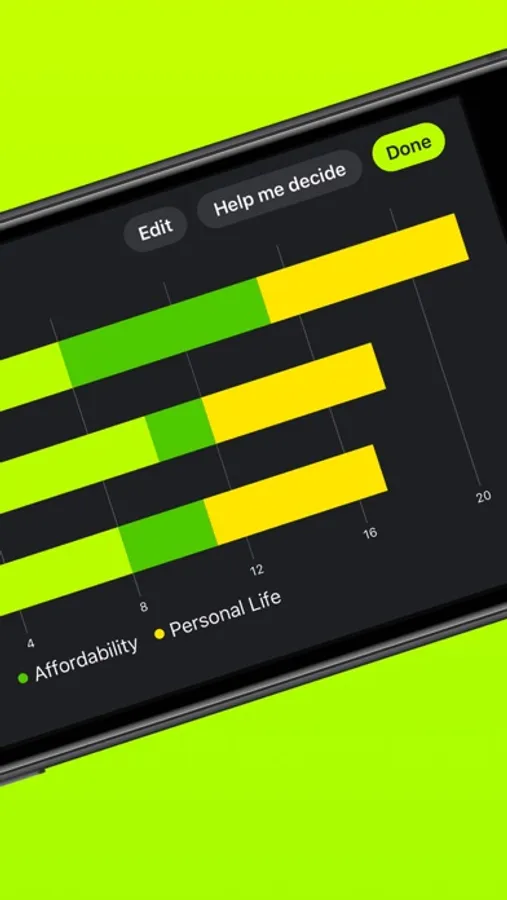 Make big decisions more manageable by visualising the impact of each option on the parts of your life you care most about.
