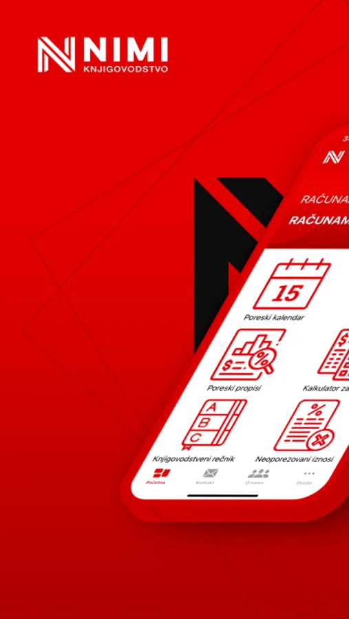 Dobro došli na zvaničnu aplikaciju „Nimi - Knjigovodstvo“ za poreze i finansije u Srbiji. Aplikacija je u svojini privrednog društva NIMI d.o.o Niš i omogućava Vam da: