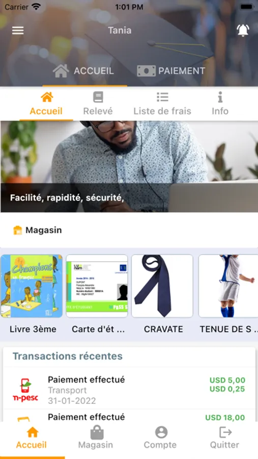 Nous ont conduit à réfléchir et concevoir une application dénommée Mbangu pay, qui permet d’apporter des solutions idoines à la problématique ainsi soulevée. Sécurité, rapidité, facilité, Mbangu pay est une solution informatique qui répondra correctement aux besoins des étudiants et élèves, de la banque aussi bien des universités, Instituts supérieurs, Ecoles…