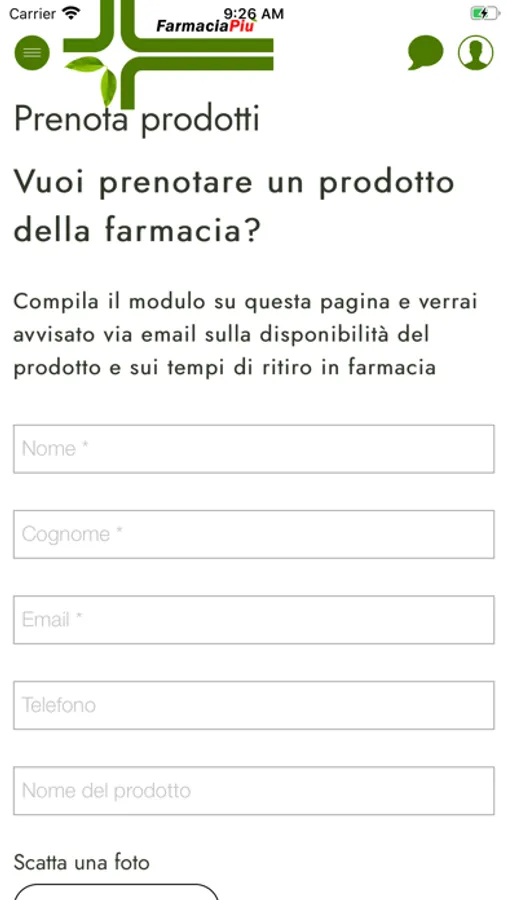 - Richiesta e prenotazione prodotti, anche mediante l'invio di immagini