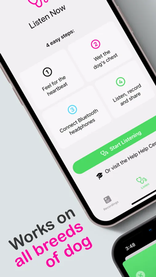 However, we strongly recommend using Airpods or bluetooth headphones for listening to and recording your dog's heartbeat.
