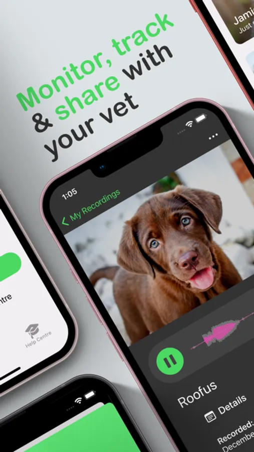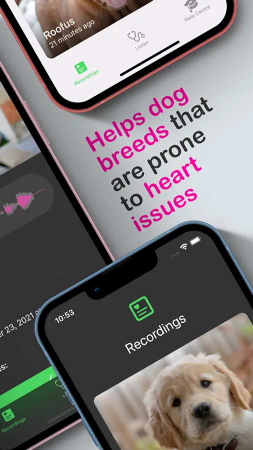 An amazing dog health monitor app that allows you to listen to your dog's heartbeat (using just your iPhone microphone), then record and share with your Vet. Whether it is a Black Labrador or a Daschund, Snoopy will work with any breed of dog. No Accessories required. Designed to help dog breeds who may be prone to dog heart murmurs.