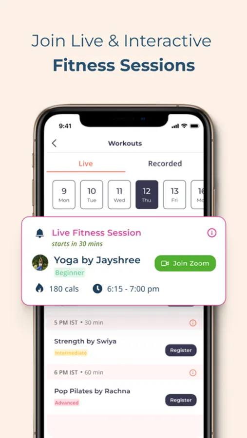 Try our live & interactive fun exercise sessions designed around the different needs of women with PCOS / PCOD & Thyroid disorders. Experience Yoga, Strength & Conditioning, HIIT, Zumba and Pop Pilates, throughout the day, from the comfort of your home.