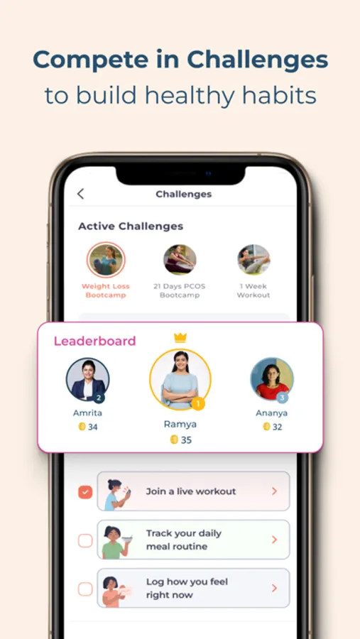 Our daily challenges are designed to help you build the right habits. Compete with other women on daily tasks. Climb up the leaderboard & earn coins as you work on your health goals. With our challenges, you can get better and have fun at the same time!
