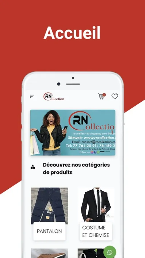 RN Collection est l'application de shopping en ligne qui vous simplifie la vie. Achetez divers catégories de produit: Pantalon, Chemise & costume, High tech, Chaussure, Blouson, etc.