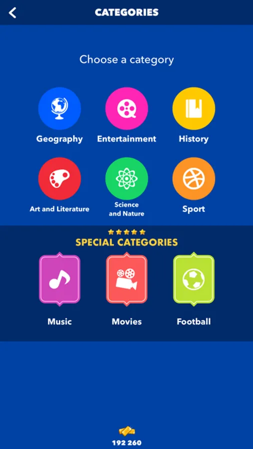 Test your general knowledge and discover all available categories: geography, entertainment, history, art and literature, science and nature, sports, music, films and football! Take your pick!