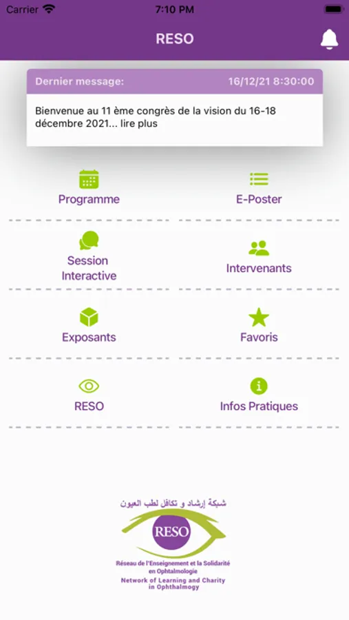 Application officielle du 11ème congrès national de la vision organisé par RESO (Réseau de l'enseignement et la Solidarité en Ophtalmologie) du 16 au 18 décembre 2021.