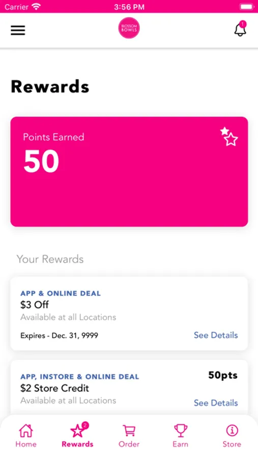 Blossom Bowls App - Earn and track your rewards at participating stores