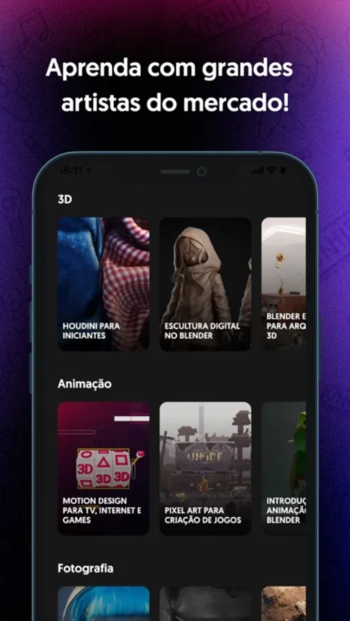 O conteúdo da UNHIDE School disponível onde você estiver. Acesse os cursos e conteúdos exclusivos de diversas áreas da Arte Digital, abordando do básico ao avançado por instrutores experientes do mercado.
