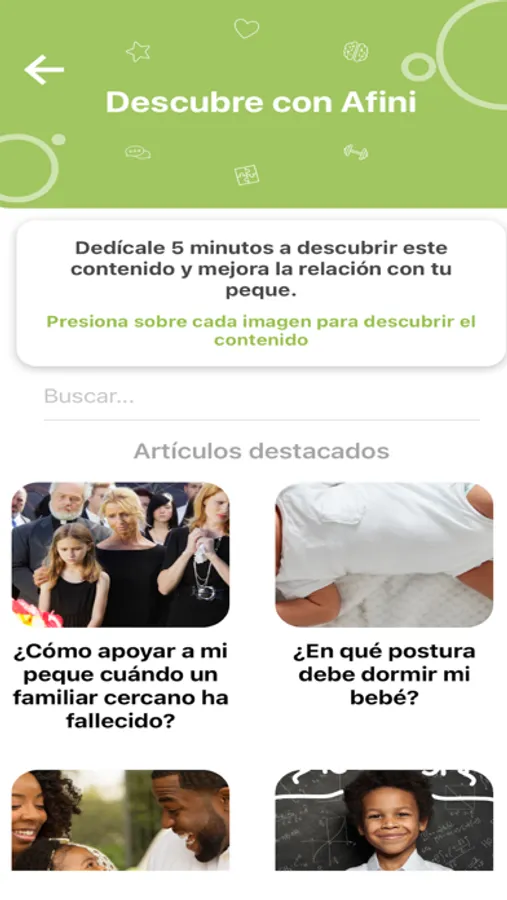 Afinidata es una aplicación gratuita dirigida a cuidadores principales de niños de 0 a 6 años que proveerá de actividades para que los cuidadores puedan relizar con sus pequeños para desarrollar sus capacidades cognitivas, motoras y socioemocionales.