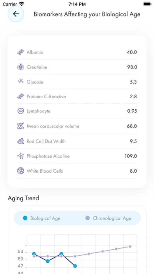 The personalized Biomarker Tracker feature allows you to monitor every biomarker that has been assessed. This provides ground-breaking insights on medical conditions, diseases and your global health.