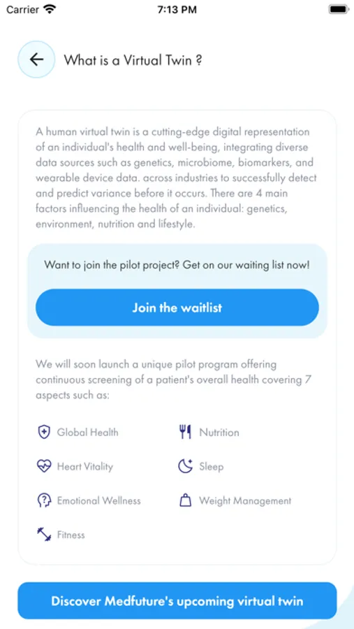 Get your medical data easily and keep track of your health in real time with the Medfuture App.