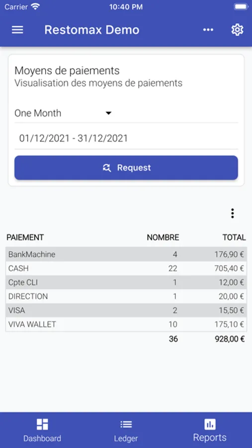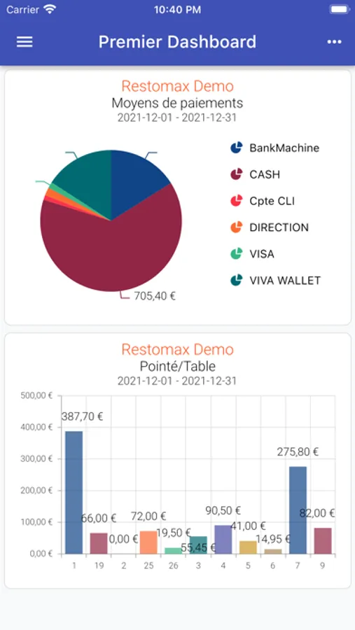 Viewing the turnover of your RESTOMAX establishments in real time.