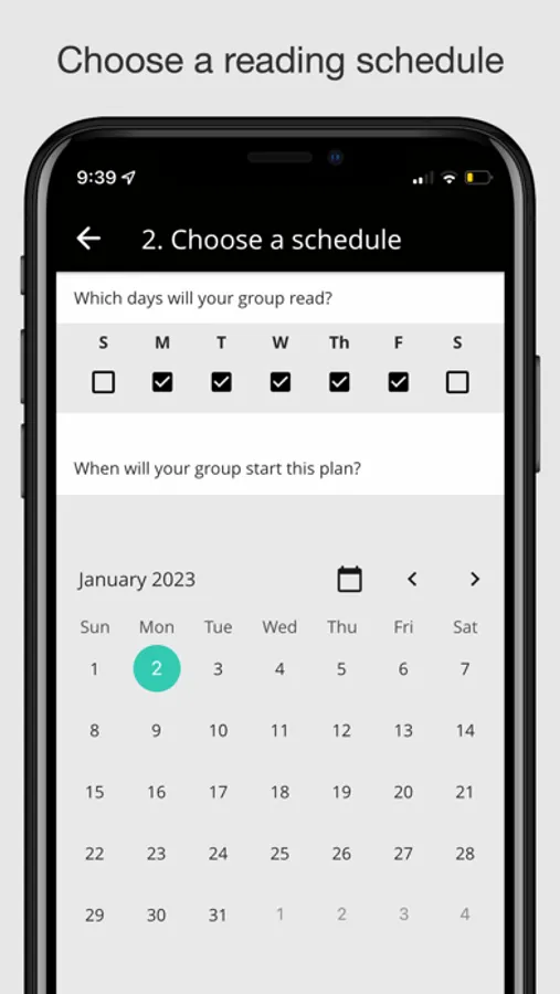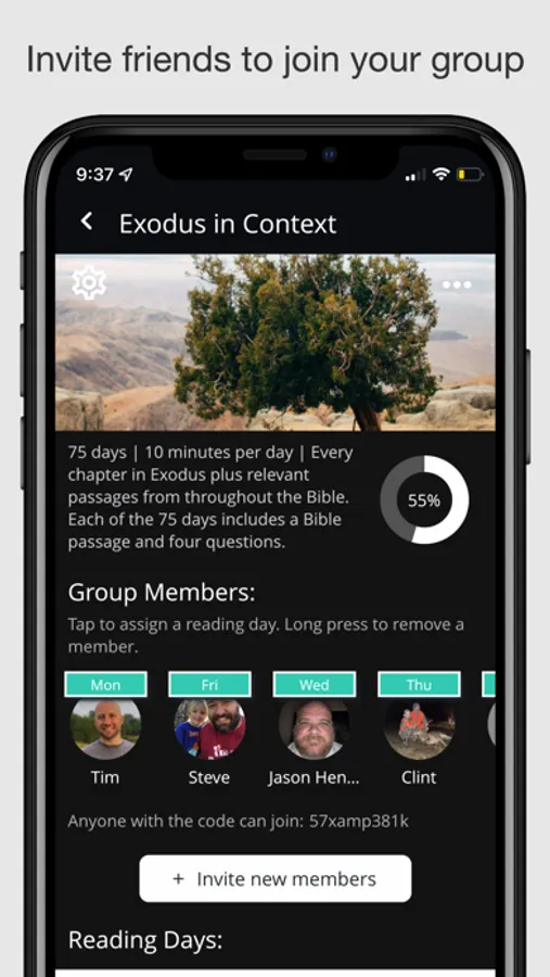 * Assign a reader for each day of the week. For example, the group leader can read on Mondays, another member on Tuesdays, and so on. You can also use the app to set up your schedule in a simple rotation.
