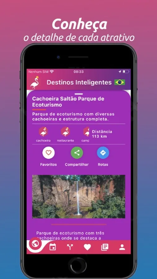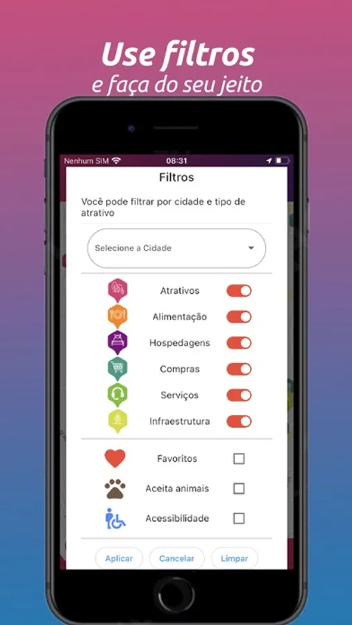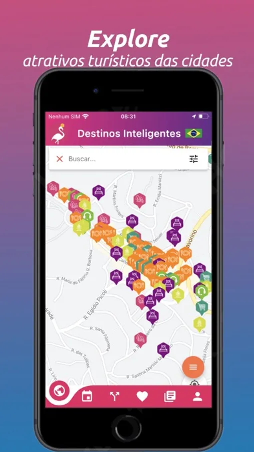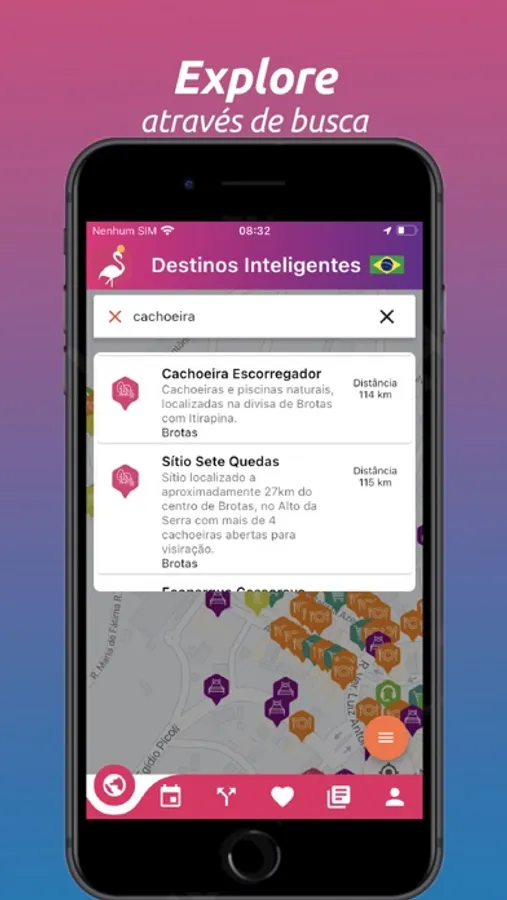 Visualize no mapa milhares de destinos classificados por Atrativos, Restaurantes, Hotéis, Serviços, Comércio, etc.