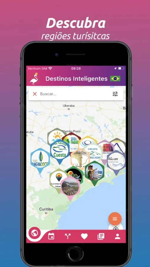 Visualize no mapa dezenas de regiões turísticas, cidades, atrativos turísticos, eventos, restaurantes, hotéis e milhares de opções de destinos para sua viagem.