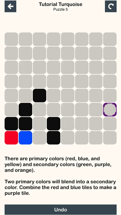 Each level consists of colored tiles placed on an 8x8 grid. Navigate tiles around the board to fill their corresponding targets. Some tiles blend into new colors, while others can assist each other to their targets.