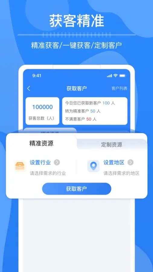 今日获客为全国海量企业和销售团队提供企业人脉/客户数字化解决方案,已成为年轻用户必备的工作神器,不等待,不犹豫,下载后直接开始获客!