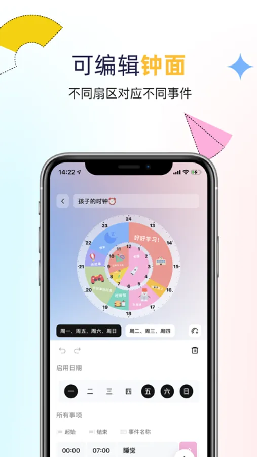 ● 时钟内可独立定义周内特定日期子时钟,摆脱重复编辑的烦恼。