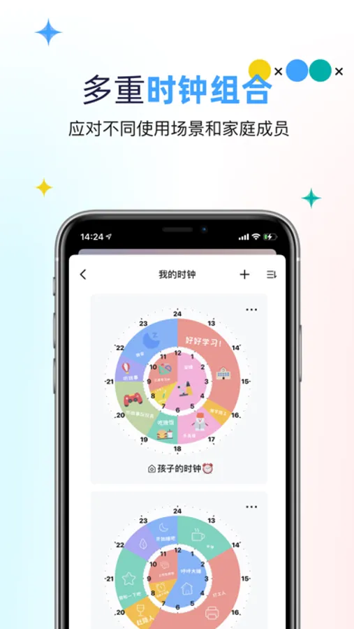 ● 一个账号可拥有12个时钟,应对不同使用场景和使用成员;