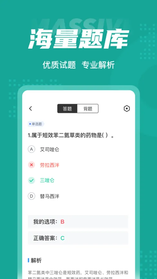 执业药师聚题库是一款专为参与执业药师考试的用户打造的手机在线学习服务应用软件,软件有丰富的题库,历年考试真题试题、模拟考试场景,丰富多样化的陪你一起考执业药师资格证书,在力图使内容达到时新性和全面性的前提下,还注意从实际出发,重点内容重点介绍,致力于实用性,是各位考生学习乃至通过考试的好帮手。