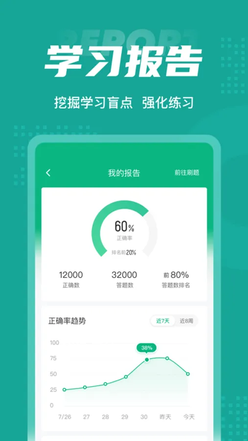 执业药师题库内含考点练习,全国通用卷以及地区卷模拟练习,以及按照固定考试比重的随机式的抽题的真题考场,成绩单实时记录考试数据,一点一滴的反馈考生近期学习状态以及自我正确率的提升,大大的给予考生通过考试的信心。