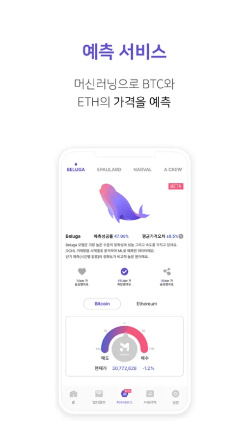 ⓜ 인공지능이 예측하는 비트코인과 이더리움의 가격을 알 수 있어요.