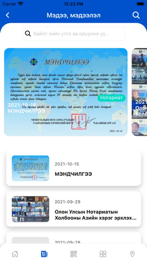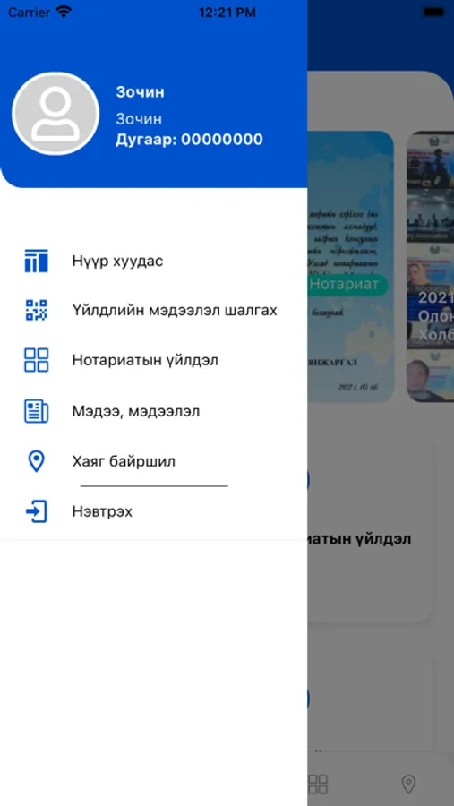 Нотариатын үйлчилгээ авах, байршил харах, мэдээлэл авах зэрэг үйлчилгээ