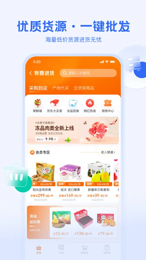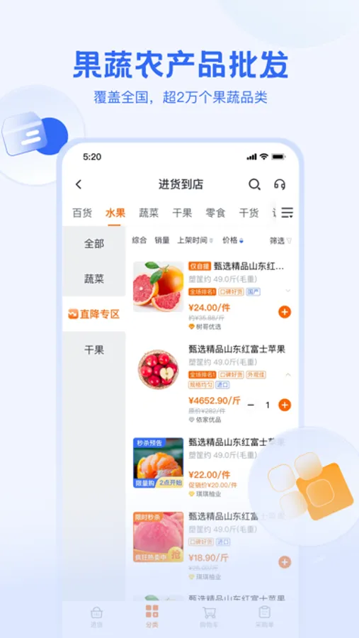 【果蔬批发】优选源头产地一手货源,打造钜惠果蔬,平台一键进货,没有中间商赚差价。果蔬价格保真、按时发货、坏果包赔、足斤足两,果蔬批发进货更有保障。