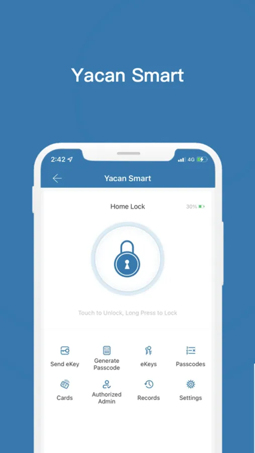 Las cerraduras inteligentes compatibles con YACAN SMART están equipadas con nuestra tecnología integrada directamente en las cerraduras. Esto le permite beneficiarse de todo el sistema YACAN SMART y conectar fácilmente con nuestra APP. Este sistema le ofrecen una cómoda entrada sin llave a su hogar o negocio, ya sea por teléfono móvil, huella dactilar, tarjeta, contraseña, detección facial o pulseras RFID. Podrá verificar la identidad del visitante y otorgarle acceso temporal.